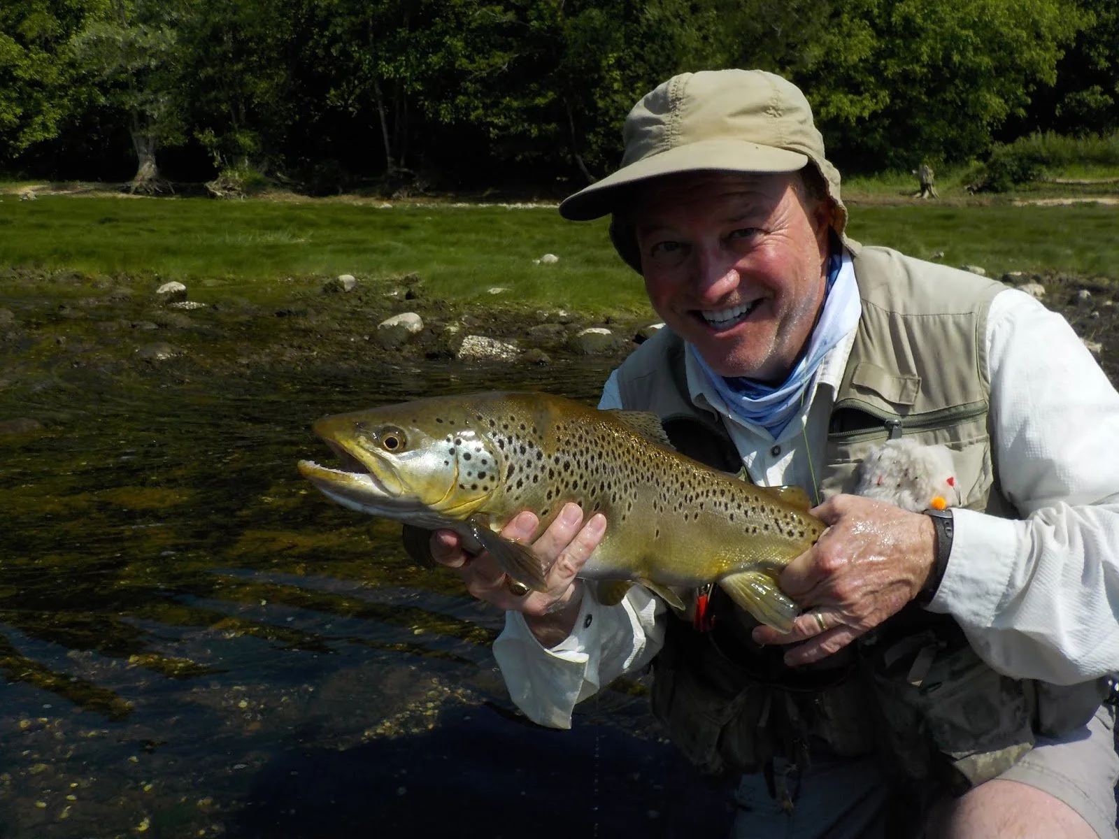 This 20" Brown Trout took my size 16 nymph and after he went upstream during the fight, I had to quickly head downstream and get below him in order to net him. It is very important to get below big fish while netting. This way you simply get its head up... and the current pushes him into your net. Fly Fish Tennesse - Get out there!!!!